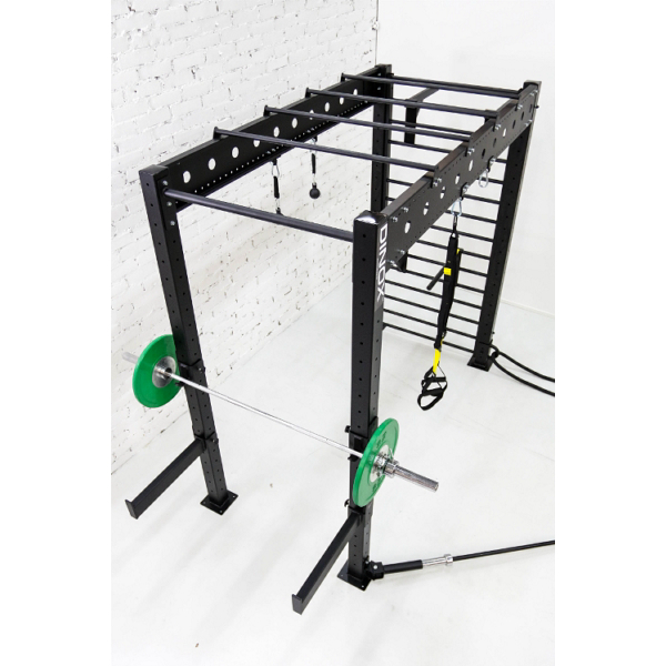Vahvasta teräsputkesta Suomessa valmistettu rack mahdollistaa kokonaisvaltaisen ja tehokkaan treenaamisen. Dinox Rackissä on hyvät edellytykset sekä perinteiseen painoharjoitteluun kuin myös kehonpaino- ja toiminnalliseen harjoitteluun. Toisessa päässä puolapuut toimivat erinomaisesti kehonpainoharjoittelussa ja toisen pään korkeussäädettävät levytankotelineet turvarautoineen mahdollistavat mm. turvallisen kyykkäämisen, pystypunnerruksen ja penkkipunnerruksen variaatioineen.
