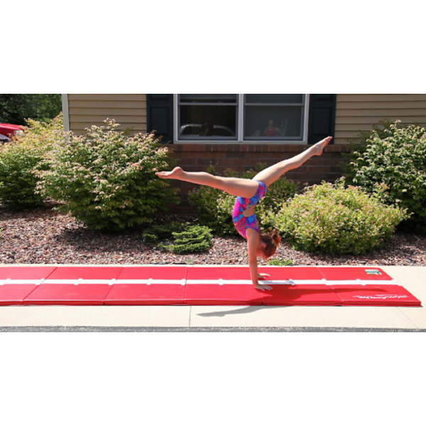 Toisella puolella on valkoinen puomikuvio, jonka avulla voit harjoitella erilaisia liikkeitä turvallisesti. Käännettäessä toiselta puolelta ilmestyy ruudukko, jolla myös rytmiharjoitteet ja hyppelyt onnistuvat.